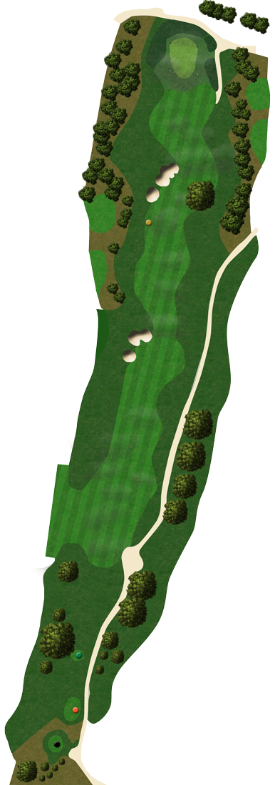 A 496 metre par 5 (468 from the Middle and 431 from the Forward tee), is a tight driving hole slightly uphill and out of a chute between the mature pines. The two fairway bunkers on the LHS at 280 metres act as a sighter and to frame the hole rather than being located for strategic reasons. It is the second shot where the difficulty begins, players have to decide to take a gamble and go for the green in two or to lay up short of the two fairway carry bunkers on the LHS and a well established Eucalyptus tree on the right.