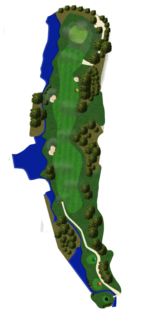 At 412 metres (384 from the Middle tee and 347 from the Forward tee), this par 4 dogleg right is the second longest par 4 on the course. A fairway bunker at 235 metres on the left and a narrowing of the fairway on the right provides a very narrow opening to play through.