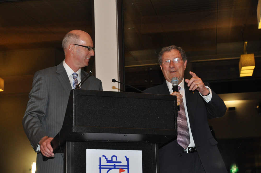 Course designer and golf legend Peter Thomson entertained the crowd with a presentation in interview style with David before being escorted to the first tee by then trainees Jess Bramble and Chris Hinves – and with his drive officially opened the course – and triggered what was a magnificent fireworks display and those present went on to enjoy the night in grand style.