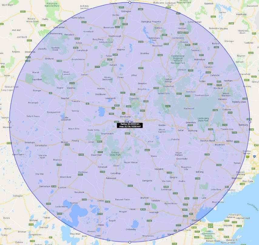 A country member is one whose permanent place of residence is outside a radius of 80km from the Ballarat Golf Club.