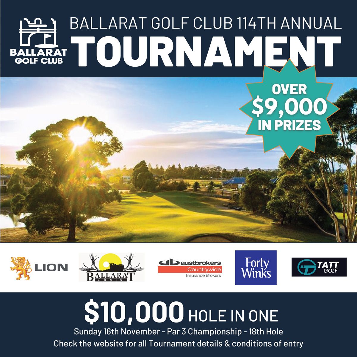 The Ballarat Golf Club is excited to host its 114th Annual Tournament from Saturday, 15th November to Sunday, 23rd November.